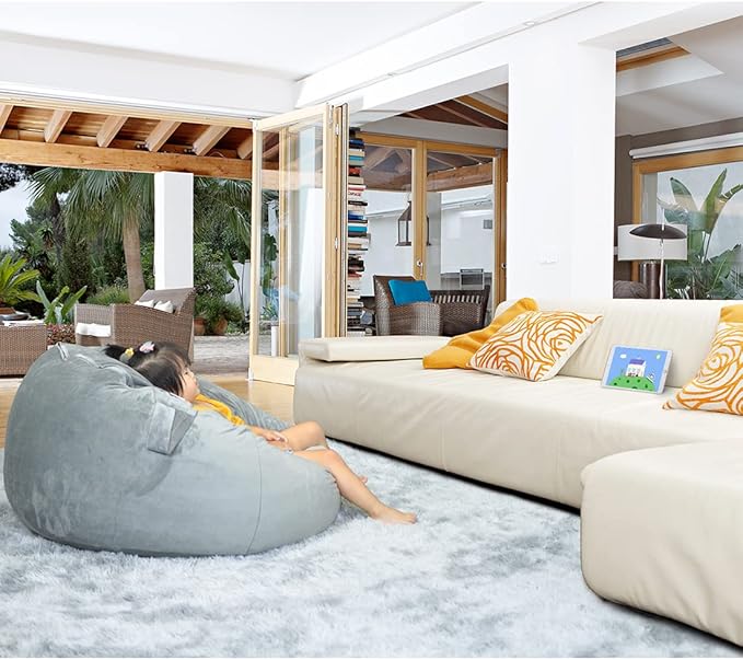 - COMFORTABLE & LONG-LASTING - (Note: the filler and plush toys are not included in the package) Our bean bag chair cover is made of thicker, softer, feel smooth and more luxurious velvet, it's outfitted with hidden YKK zippers, unique design handle combined with fine workmanship makes it more comfortable and sturdy.