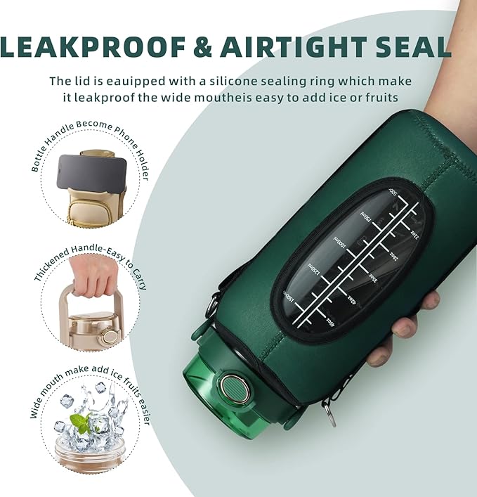 - Glass Water Bottle With Sleeve and Strap: This glass water bottle with straw is designed with high quality 5mm Neoprene sleeve to protect water bottle from slight bumps and absorb sweat to avoid dripping on table or seat. It’s an all-in-one water tracker bottle, water bottle sleeve with 2 pockets to storage phone, card,airpods, key and motivational water bottle with comfortable padded shoulder strap & wrist strap for hands free carrying. You can adjust the strap ensure a snug fit