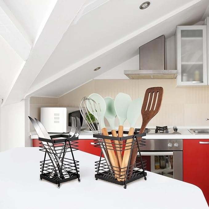 - Drain Hold Design for Fast Drying: The open frame of this utensil crock caddy, and it is easy to clean and dry; Along with sinking bottom allows water to smoothly pass through for fast drying.