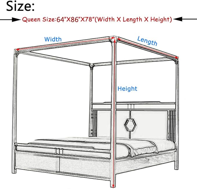 - PRODUCT SIZE -- Queen size:64" X 86" X 78"(Width X Length X Height);Please measure your bed size before you purchase it.
