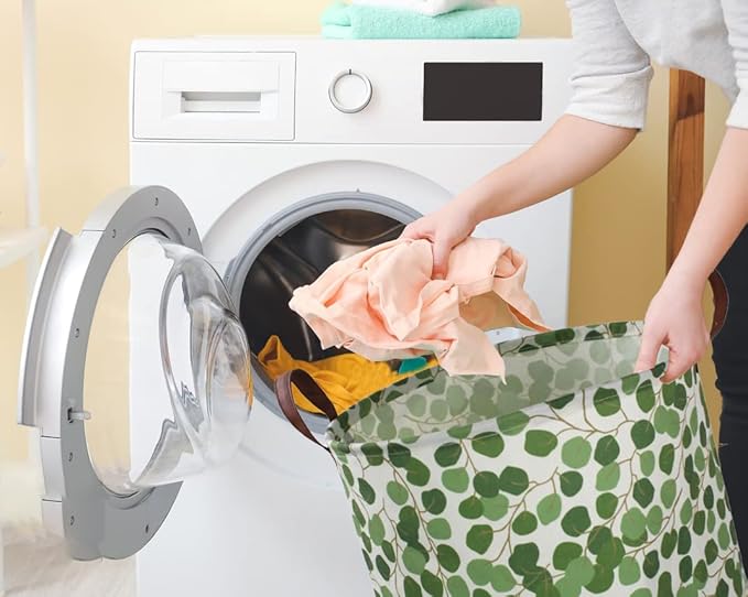 - 【FEATURE】:1.The laundry basket has a large capacity and can store the whole family's clothes. 2.Laundry basket with two handles, easy to move. 3.collapsible design,you can fold it up when you don't need it,easy to store and save space. 4.The pattern of clothes hamper is fashionable and stylish, It will be great gift for family and a good helper for housewives.