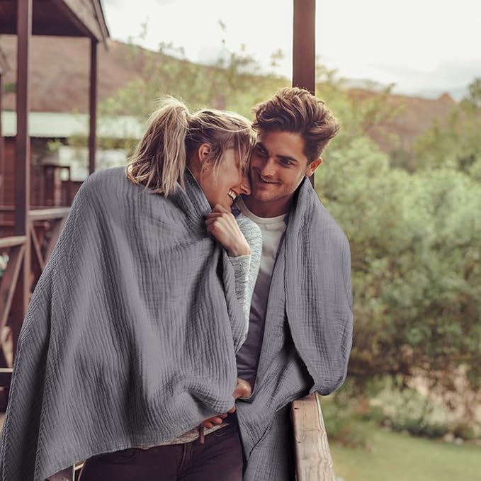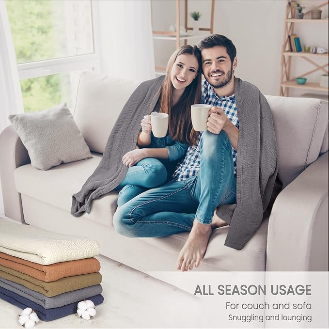 Lulu moon Muslin Blankets for Adults 55”x75” - Couch Throw Blanket for Boys - Light Weighted Muslin Quilt for Sofa and Bed (Gray)