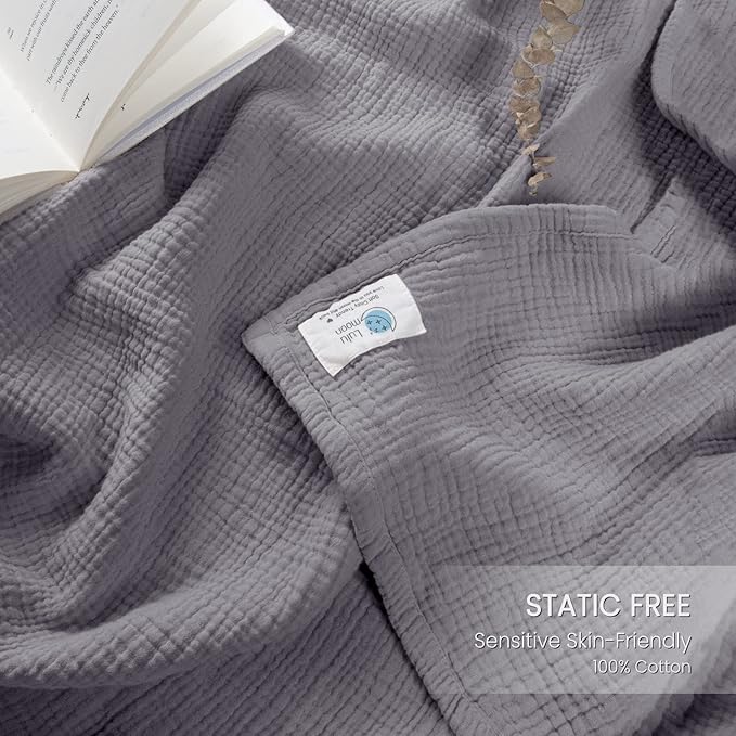 - Natural Cotton: Lulu moon Muslin Throw Blankets made of 100% Cotton Gauze, Which are cozy and skin-friendly. 100% cotton has no static in dry winter and Hypoallergenic to sensitive skin.