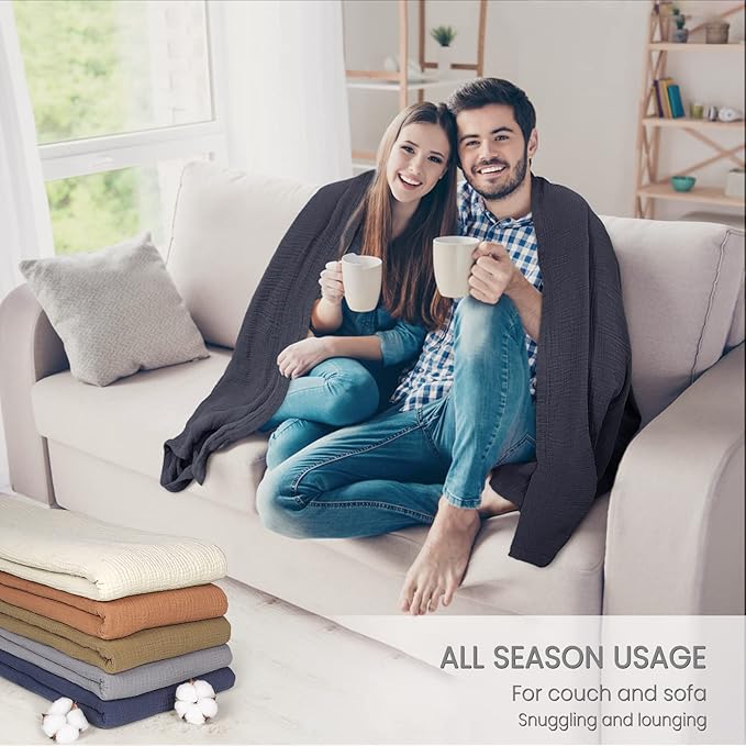- Feature Details: We chose a classic gauze material to make this throw blanket; you can feel the care and craftsmanship in the design from the hem of the blanket. The color of the blanket is very vintage and attractive; it can be used not only as a sofa or couch blanket, but also as a trendy decoration of the bed.