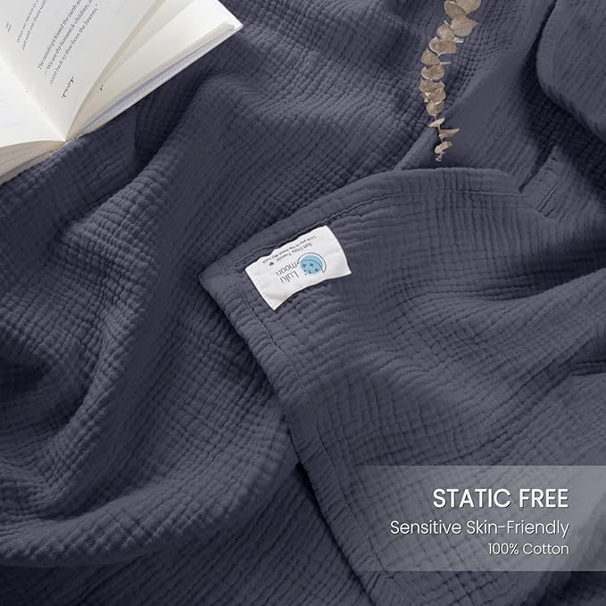 - Natural Cotton: Lulu moon Muslin Throw Blankets made of 100% Cotton Gauze, Which are cozy and skin-friendly. 100% cotton has no static in dry winter and Hypoallergenic to sensitive skin.
