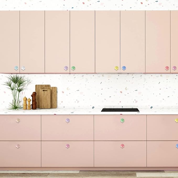 - These colorful sweet seashell-shape pull knobs are smooth and beautiful. Its cuty, pretty, artistic design feels good and comfortable while sliding and pulling cabinet doors or drawers.