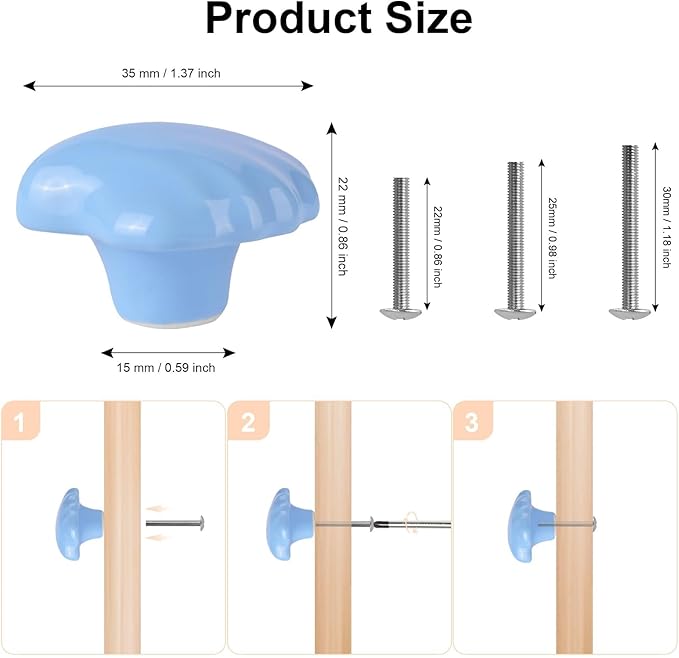 - 10 Color: Beige, Yellow, Green, White, Pink, Light Pink, Pale Pinkish, Light Purple, Blue, Blue-green; Knob size: 1.37*0.86*0.59inch/35*22*15mm; A new way to spice up a boring closet and bring a lively flair especially into the children's room.