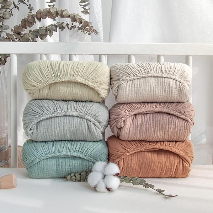 - 100% MUSLIN COTTON - The mini crib sheets are soft and breathable to give your baby a cozy place to sleep. They make a smoother transition from snuggled in your arms to safely sleeping in their mini crib.