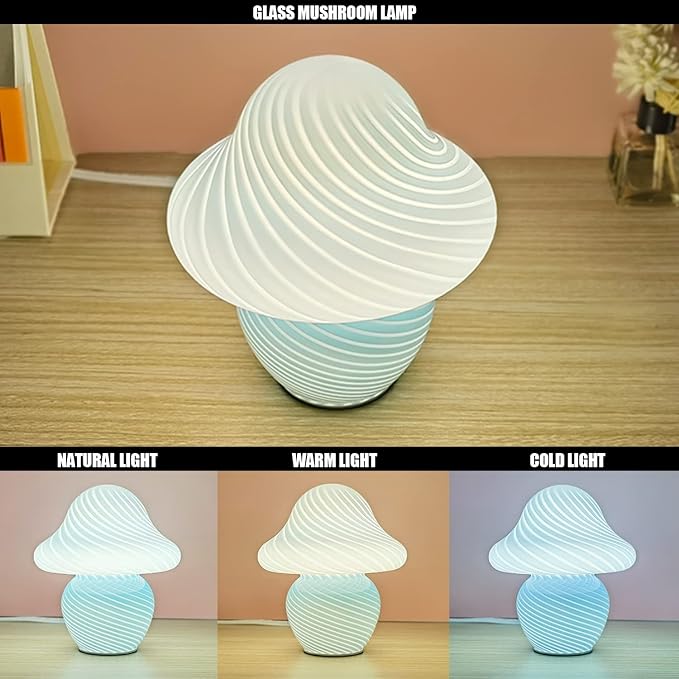 - 【Unique taste, striped streamline design】:This lamp has a retro design with white stripes, full of mid-century style. The soft curve and streamline stripes make the glass mushroom lamp have a strong sense of movement and rhythm, full of visual impact, and can show the beauty of personality.