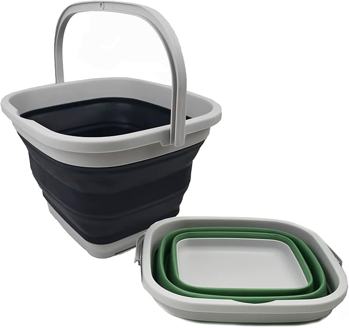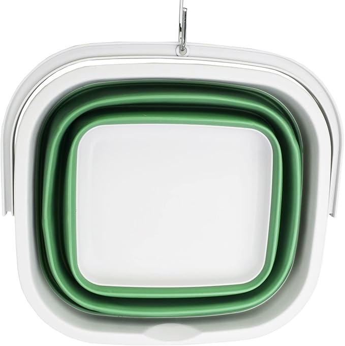 - Space saving with Expanded size: 13.6 x 12.7 x 8.4(h) inches and its height just 2.1 inches after folds. Save over 70% space when storage. Capacity: 10L / 2.6 gallon