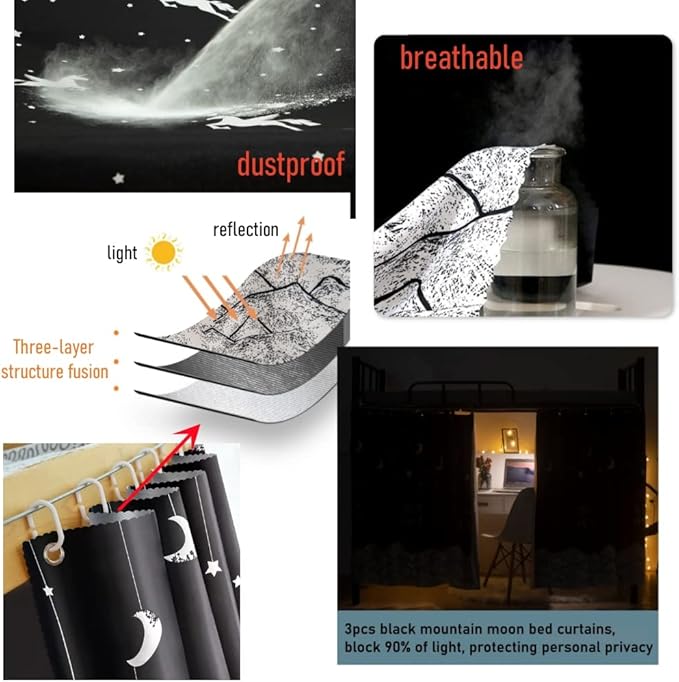 - WIDE RANGE OF USES: It is very easy for yourself to install or disassemble it. It is suitable for students dormitory bunk bed, rack dorm,single bed and home use. Suitable to use at dormitory and home for all year round. It will not only create a better mini world for you, but also will make your room looks neat and beautiful.