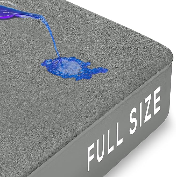 Utopia Bedding Waterproof Mattress Protector Full Size, Premium Terry Mattress Cover 200 GSM, Breathable, Fitted Style with Stretchable Pockets (Gray)