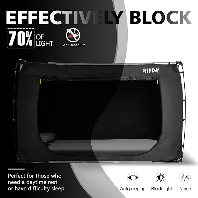 - Blackout Technology: When you close the bed tent's zipper, lying in the dark tent space, blackout 70% allows you to hallowing you to enjoy a more pure sleep in the night until dawn.