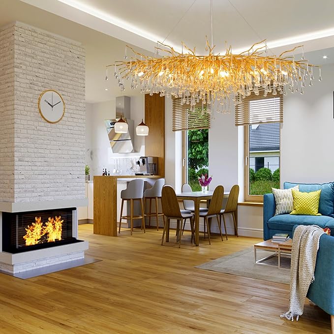 - The gold crystal chandelier is great for living room, dining room, entryway, foyer, villa, farmhouse, girls bedroom, kitchen island. It is a very great chandeliers decoration for Christmas, new years and daily.