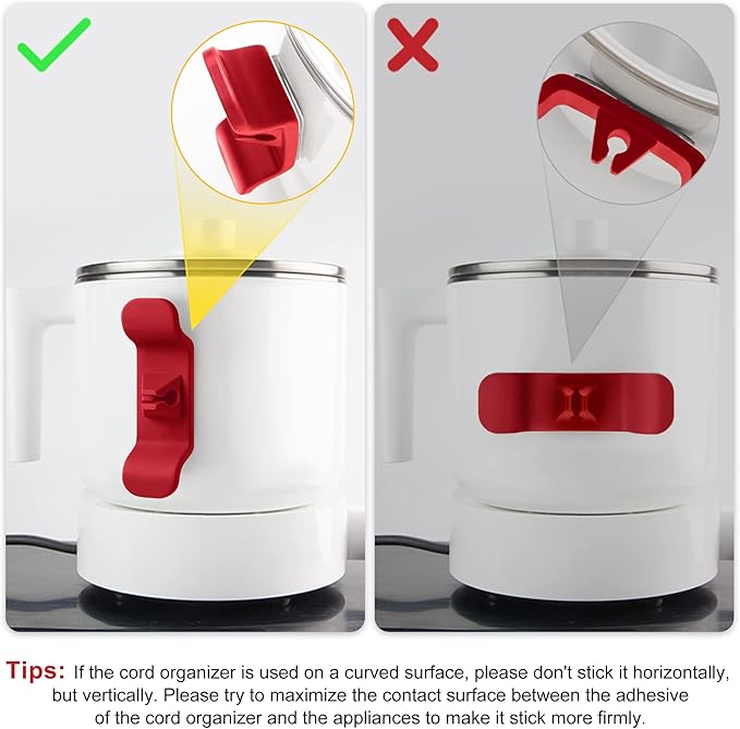 - PREMIUM MATERIAL: Each appliance cord organizer stick on is made of high quality rubber, durable and deformation resistant. The sticky adhesive pad is non-toxic, odorless, and will not leave marks on kitchen appliance surface