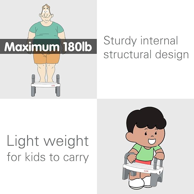 - STEP STOOL WITH HANDDLE: We add handle design to the LOL-FUN toddler step stool,there are four heights that can be adjusted, help toddlers up and down the step stool. The curve design of the step stool for kids fits the toilet, suitable for most toilet