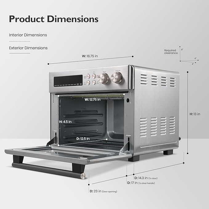 - [CRUNCHY and HEALTHY COOKING EXPERIENCE]Our Air Fry feature is a healthier alternative to traditional frying, reducing fat by up to 75%. Enjoy all your favorite foods guilt-free, including deep-fried favorites like fries. With intensive and efficient infrared heating combined with true convection, our air fryer toaster oven delivers perfectly crispy and golden results every time. This delivers an exquisite blend of texture and flavor, ensuring a superb culinary experience.