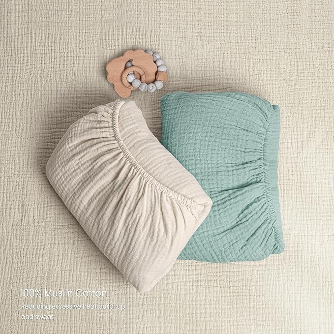 - SOFT AND COMFORTABLE - The crib sheets is made of 100% muslin cotton, super soft, comfortable, and won't irritate your baby's delicate skin. Lightweight, breathable muslin crib sheets stay cool even in warm weather.