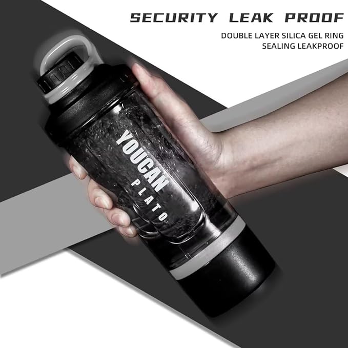 - ๐๐๐ก๐๐ค๐๐ซ ๐๐จ๐ญ๐ญ๐ฅ๐ ๐ฐ๐ข๐ญ๐ก ๐๐ซ๐จ๐ญ๐๐ข๐ง ๐๐จ๐ฐ๐๐๐ซ ๐๐ญ๐จ๐ซ๐๐ ๐ ๐๐จ๐ฆ๐ฉ๐๐ซ๐ญ๐ฆ๐๐ง๐ญ๏ผWant to easily supplement your protein intake anytime, anywhere? This shaker bottle is your best choice! Not only is it convenient to carry, but it also comes with a protein powder storage compartment, allowing you to add protein powder to your drink anytime, anywhere, and meet your nutritional needs.