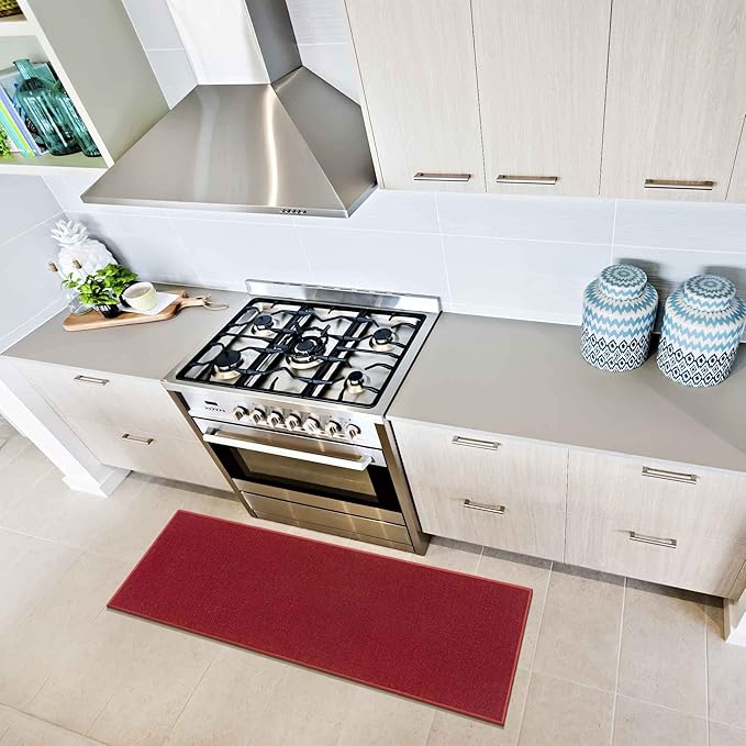 Machine Washable Modern Solid Design Non-Slip Rubberback 2x5/2x3 2PCS Set Traditional Runner Rug/Area Rug for Hallway, Kitchen, Entryway, Bathroom, 2 Piece Set - 20" x 59" / 2'3" x 3', Red