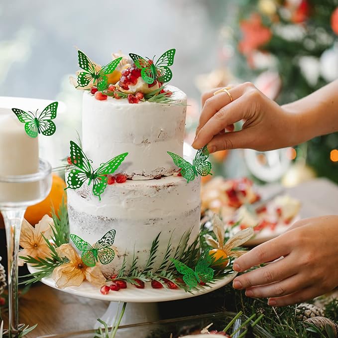 SAOROPEB 3D Butterfly Wall Decor 48 Pcs 4 Styles 3 Sizes, Green Butterfly Birthday Decorations Butterfly Party Decorations Butterfly Cake Decorations, Removable Stickers (Dark Green)