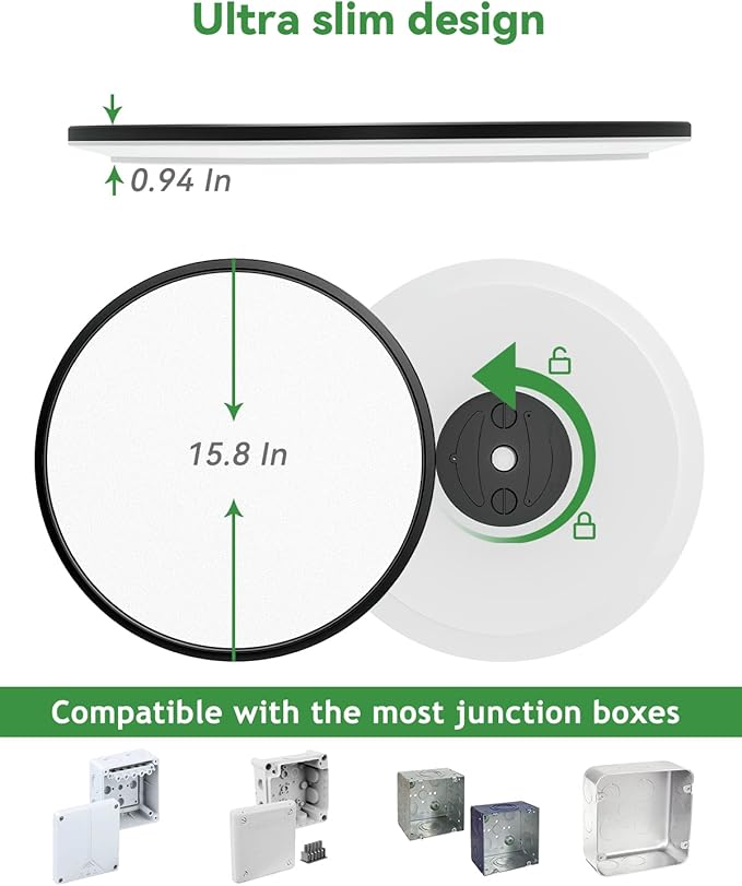 1PACK Flush Mount LED Ceiling Light Fixture Black, 15.8Inch 36Watt, Dimmable & 3000K-4500K-6000K 3 Color Selectable Ceiling Lamp 4000LM Low Profile Ceiling Light for Kitchen Bedroom Hallway Porch