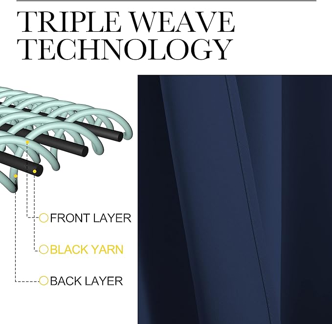 - Amazing Material: Super heavy and soft Blackout Curtain Panels are very upmarket. Besides, 85%-99% light blocking, thermal insulated, soundproof, Fade-resistant, energy-efficient. Thread trimmed and wrinkle-free, both sides are the same color.
