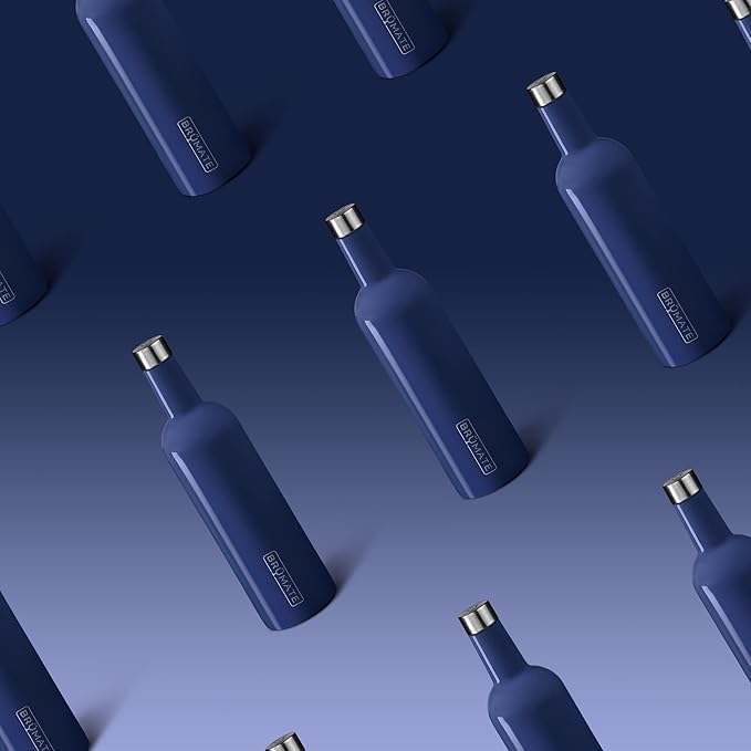 BrüMate Winesulator 25 Oz Triple-Walled Insulated Wine Canteen Made Of Stainless Steel, 24-hour Temperature Retention, Shatterproof, Comes With Matching Silicone Funnel (Navy Blue)