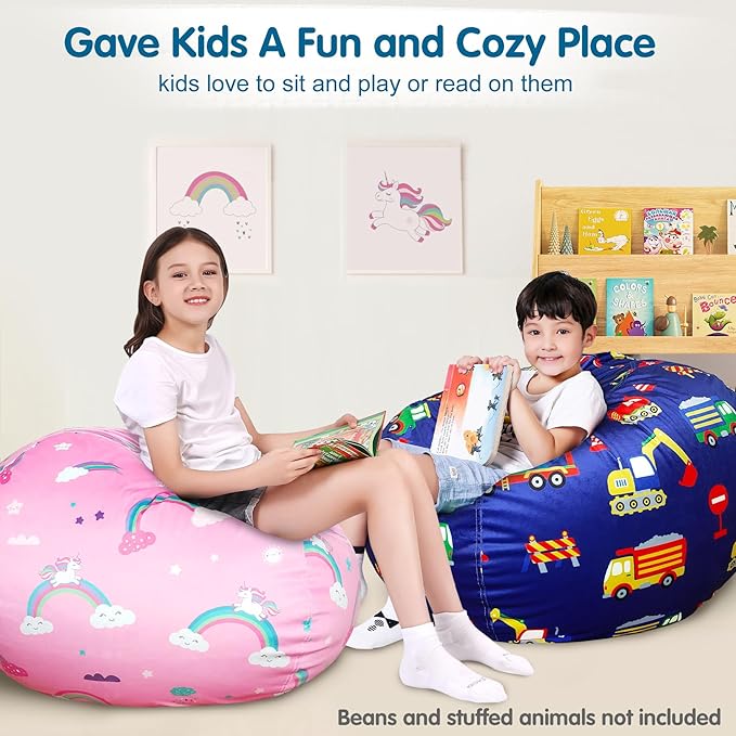 - Bean Bag Cover Only: You will like this concept of using stuffed animals, pillows, and blankets as the filling. Creative solution for managing stuffed animal clutter that is popular with both kids and parents, as turns your soft animals into a bean bag chair, a great way to keep the room tidy while also providing a fun and cozy place to sit and play or read for kids and adults