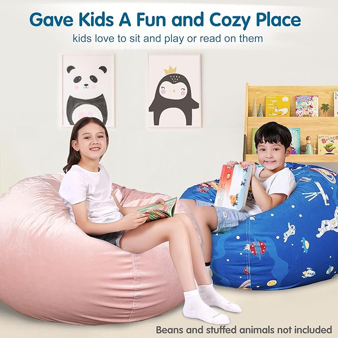 - Great Stuffed Animal Storage: X-Large size bean bag chair cover at 31" and could hold up to 90 small stuffed animals toys (Not Included). The cute design adds a charming touch to the room. And cool patterns to choose from