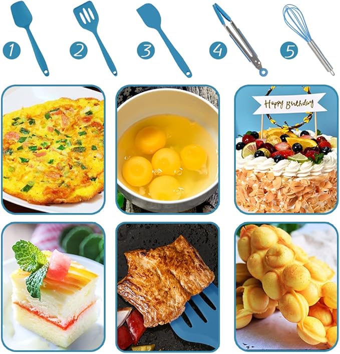 - 〖Fashionable holiday gift〗: This set of mini silicon kitchen tools adopts fresh blue design, stylish appearance and excellent quality, very suitable as a holiday gift, which will be impressive.