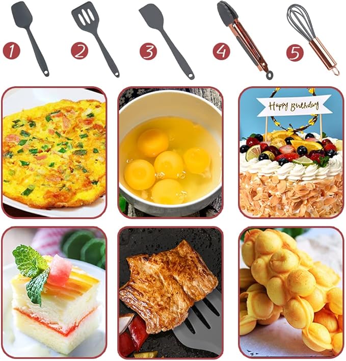 - 〖Fashionable holiday gift〗: This set of mini silicon kitchen tools adopts fresh grey and rose gold design, stylish appearance and excellent quality, very suitable as a holiday gift, which will be impressive.