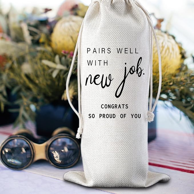 - [Farewell gifts for women men ]:this wine bags are printed with letters :"pairs well a new job congrats so proud of you", wine bags wine drawstring bags, add the cutest and fashionable elements to elegant party decorations. They are the best choice for gifts.Meet your different needs and you can share with your friends and families.
