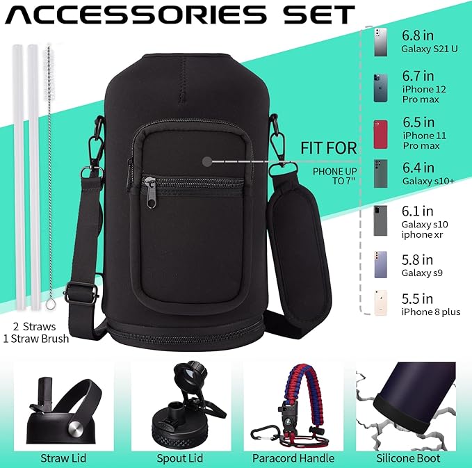 - SUPER JOYFUL COMBO: Buy a 128 oz insulated water bottle, get 9 accessories (2 x lids, 1 x survival paracord, 1 x carrying pouch, 1 x shoulder strap, 1 x protective cup mat, 2 x straws, 1 x straw brush). DIGJUPER provide a lifetime warranty and 7X24H customer service.