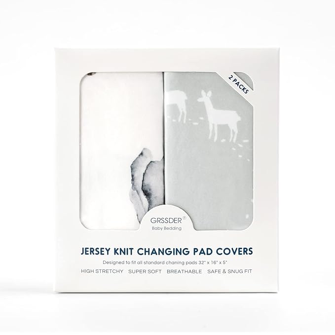 - Ultra Soft & 4-way Stretch: Made of 100% high quality soft stretchy jersey knit fabric. GRSSDER changing pad covers offer a breathable, sweat-absorbent tee shirt like feel for exceptional comfort, providing your little ones a safe and to stay in place throughout the day.