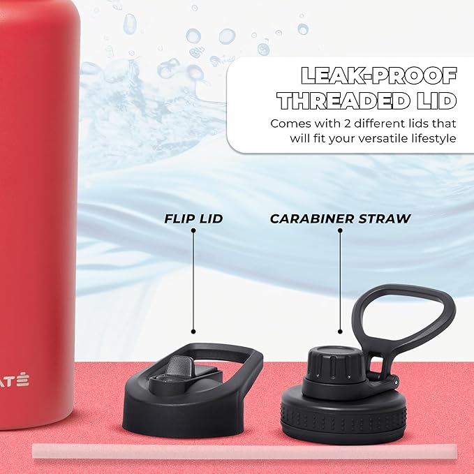 HYDRATE Insulated Stainless Steel Water Bottle - Large Reusable Flask with Leak-Proof Design and Convenient Handle - Double Vacuum Insulation for School, Work, or Adventure