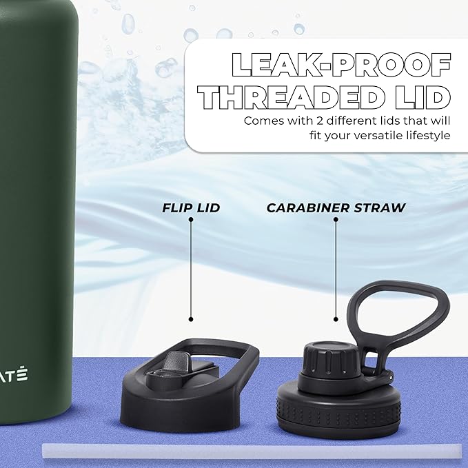 - LIDS TO SUIT YOUR SIP: Our thermal water bottle offers two lid options. Opt for the chug lid for a quick gulp or the straw lid for sips, making it a versatile metal water bottle with straw.