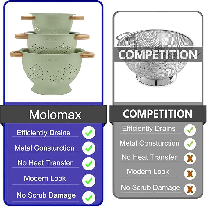 - Space-Saving Stackable Design: These colanders are stackable, making storage a breeze, and their compact design ensures they won't take up unnecessary space in your kitchen cabinets.