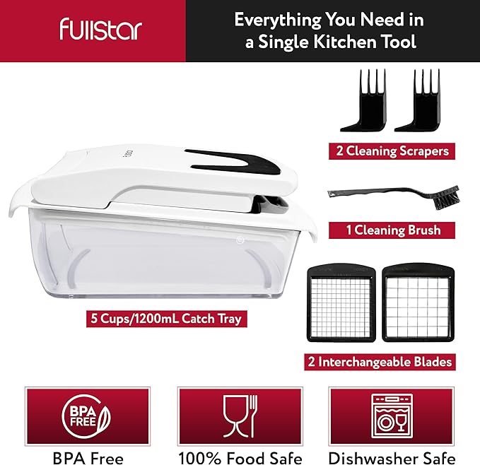 - The Viral Fullstar Vegetable Chopper - The Original Fullstar Veggie Chopper now comes with 2 interchangeable dicer blades! The built-in chop lid lets you cut foods directly into the 1.2L collection tray without the mess of a knife and cutting board. The storage container lets you hold prepared vegetables until you are ready to begin cooking.
