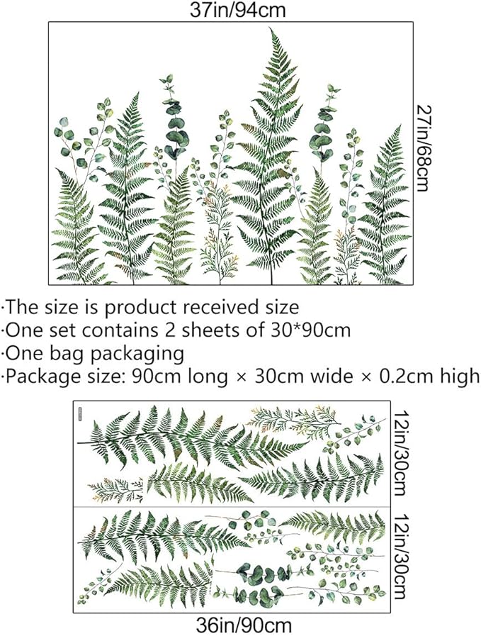 - The sticker on the wall is really great decorations for any smooth wall or window decorations, holiday party supplies. Add some color to your room, create a cute and lively atmosphere. This wall decals include 2 sheets. Each size: 12” x 36” / 30cm x 90cm, finish size is:26.7" x 37".