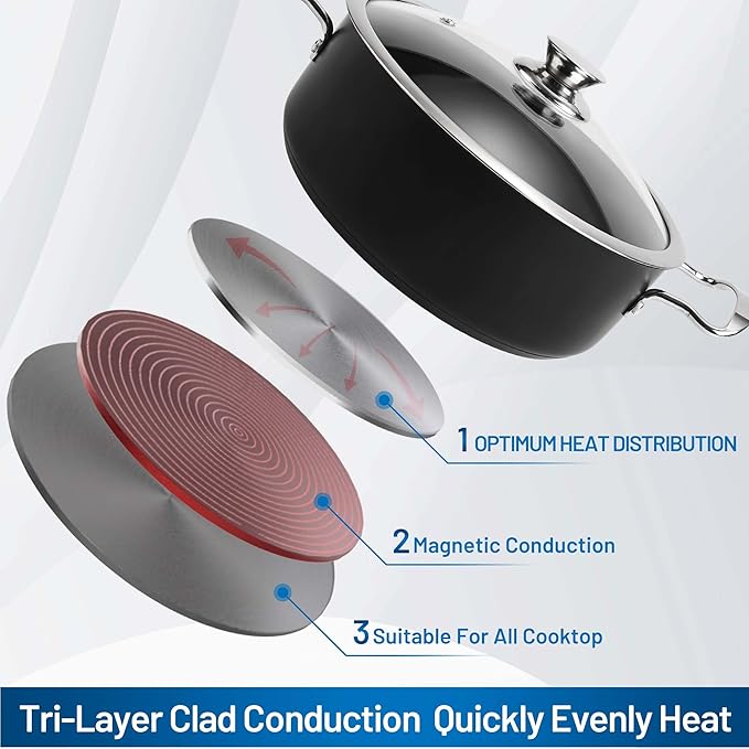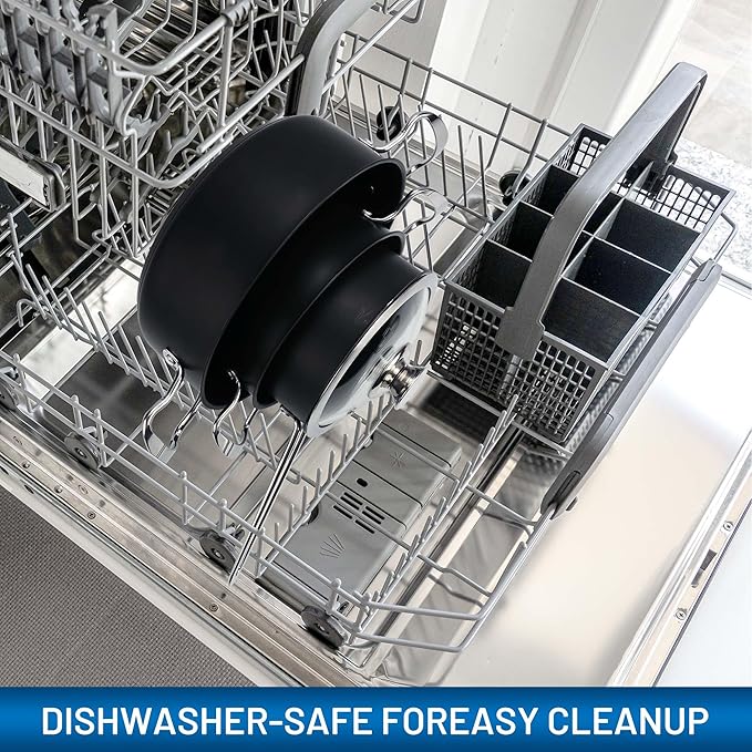 - Dishwasher Safe: Spend less time on cleanup! Simply place the nonstick pan set in the dishwasher for quick and easy cleaning after cooking.