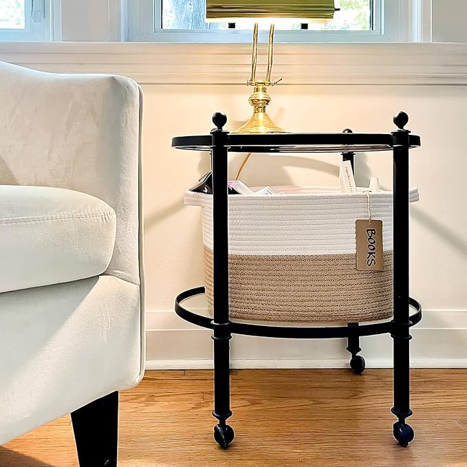 - Two Different Materials. The decorative basket is made of cotton rope and jute rope, which is perfect for home use. It's a smart choice for organizing dog toys, stuffed animals, shower supplies, and plants