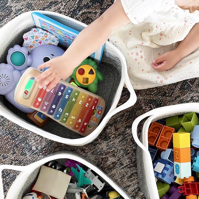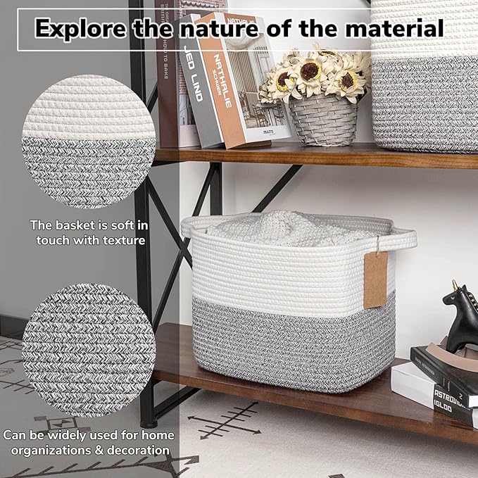 - Soft Material. The decorative basket is made of cotton rope with a soft touch, which is perfect for home use, especially for toddlers, babies, children, and pets. It's a smart choice for organizing clothes, toys, stuffed animals, blankets mand even throwing pillows