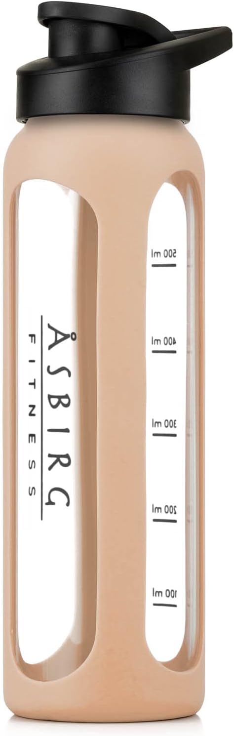 Fitness | Protein Shaker Made of Glass | Protein Shaker | Drinking Bottle | with Spiral Ball | Beige
