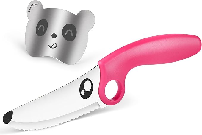 - 【Emphasis on Safety】 Safety is of utmost importance, and the ZLemma Kids Knife excels in providing a secure cutting experience. The finger guard attachment ensures that children's fingers are shielded from any potential cuts while they practice their knife skills. Furthermore, the knife's blade is designed with a safe serrated edge, specifically crafted to cut through food without posing a risk to anything else.
