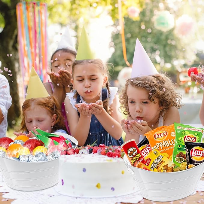 - Easy to Carry: the size of our ice drink bucket is about 13 x 8.6 x 6.1 inches/ 33 x 21.8 x 15.5 cm and the white party ice bucket is designed with an oval shape and handles for easy carrying, and even a child can carry the storage bucket filled with toys