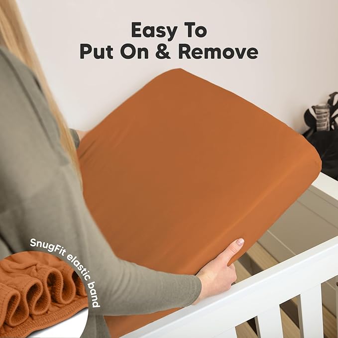 2-Pack Organic Crib Sheets for Boys, Girls - Jersey Fitted Crib Sheet, Baby Crib Sheets Neutral, Crib Mattress Sheet, Cotton Crib Sheets, Breathable Crib Sheet, Baby Mattress Sheets (Rust)
