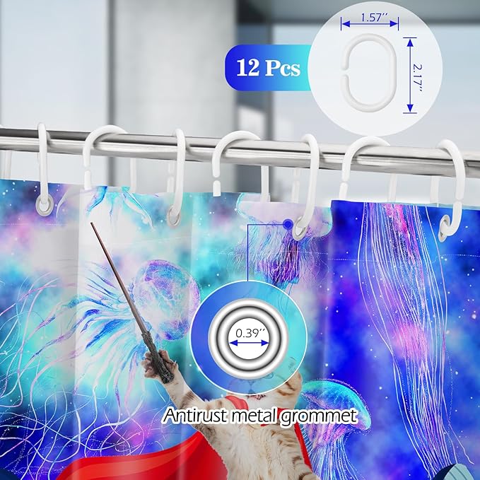- Weighted Hem Unique Design: Funny shower curtain adopts high-definition digital printing technology, Unique design of weighted shower curtain hem keeps the shower curtain hanging stable. funny fantasy galaxy space cute kids cool shower curtains for bathroom is perfect for bathroom shower and any occasion where a reliable shower is needed. Cat shower curtain also provide privacy, let you enjoy your shower time