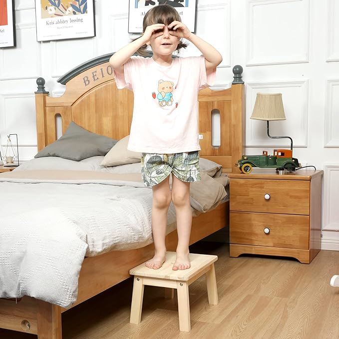 HOUCHICS Wooden Step Stool for Kids,Solid Birch for Kitchen Bedroom Living Room Bathroom Toilet Nursery Toddlers Potty Training Stool with Non-Slip Pads and 220lb Load Capacity (Natural