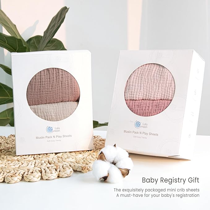 - MUSLIN COTTON - The pack and play sheets are soft and breathable to give your baby a cozy place to sleep. They make a smoother transition from snuggled in your arms to safely sleeping in their mini crib.
